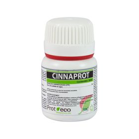 Cinnaprot es un fito fortificante, procedente de extractos naturales de canela (cinnamonum zeylanicum) con un potente efecto auto regenerativo y anti oxidante sobre la planta aparte, de su elevada eficacia para el control de ácaros en general (no selectivo). Efectos: activa y pone en marcha de los mecanismos propios de defensa de la planta ante situaciones de estrés (Fito patológico, climatología adversa, etc). Actúa por contacto, no deja residuos, utilizable en cultivos orgánicos y lucha integrada. Aplicación: Se utilizará para el control biológico de ácaros en general (incluyendo micro ácaros) con efecto sobre oídios 15 días antes de la recolección. No afecta a la resina. Dosificación: Aplicación foliar: 2-2,5 ml/L. Ph: 6,5/7. Realizar aplicaciones cada 10 o 15 días hasta el control de la plaga mojando bien toda la planta especialmente el envés de las hojas. En caso de estar utilizando ácaros depredadores, repoblar el cultivo después de aplicar. Advertencias: Manténgase fuera del alcance de los niños y alejado de alimentos, bebidas y piensos. Se garantiza su composición, formulación y contenido. En caso de accidente o malestar acuda inmediatamente al médico. Instituto Nacional de Toxicología tel: 915628469. Agitar bien antes de usar, no ingerir, evitar el contacto directo con la piel y los ojos. Marca: Prot-eco
