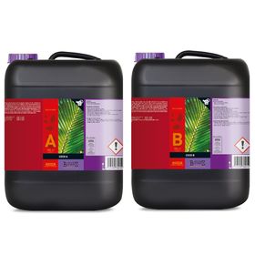 Los sustratos de coco mantienen su gran popularidad como medio de cultivo y ello no es de extrañar la fibra de coco posee las propiedades de acopio de reservas de la tierra y la precisión de la lana de roca. Esta combinación ayuda a producir plantas de excelente crecimiento y floración. El B’cuzz Coco Nutrition A+B hace que el cultivo aproveche óptimamente el sustrato de coco contribuyendo además a su equilibrio biológico. Aplicaciones: El B’cuzz Coco Nutrition A+B se aplica únicamente mezclando los dos componentes al mismo tiempo en agua templada. Utilizar agua a temperatura ambiental (21°C) para obtener los mejores resultados. Consejo de cultivo: Además del B’cuzz Coco Nutrition A+B, se aconseja la utilización de bio-estimulantes. Dosificación: 1 a 3 ml de A, y 1 a 3 ml de B por litro de agua. pH entre 5,5 5,8. CE entre 1,0 2,5. NPK B’cuzz Coco Nutrition A 6-0-6 (w/v.) NPK B’cuzz Coco Nutrition B 1-5-6 (w/v.) Marca: Atami