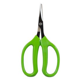 El mango de la tijera está fabricado con PVC y está forrado con goma para mejor sujeción de la mano así como evitar el efecto deslizante. La punta de la tijera es curvada y las hojas están fabricadas con acero inoxidable. Precisa y cómoda para manicurar la planta o el producto. Mide 16 cm de largo e incluye cierre de seguridad y muelle de retorno.