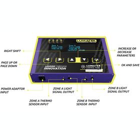 El panel de control de Lumatek es un controlador digital, que ofrece un control excepcional sobre sus kits de iluminación. Simplemente conéctelo a sus balastos controlables Lumatek y regule fácilmente su entorno de sala de cultivo. Usando tecnología altamente innovadora, este controlador monitorea inteligentemente la temperatura de su habitación, el tiempo de iluminación, la automatización, el control de seguridad y la atenuación. Características: Conectable con balastos controlables Lumatek 315W, 630W, 600W y 1000W. Enlace Pro en línea TRS (auriculares). Temporización digital, automatización, atenuación y control de seguridad. Mantenimiento de temperatura ambiente inteligente. Función automática de salida y puesta del sol. Controle hasta 400 balastos (200 balastos por canal – Zona A y B). Contiene: 1 x Panel de control Lumatek. 1 x Cable de alimentación. 2 x Cable del sensor de temperatura. 2 x Cable ‘Link’ de control. Especificaciones clave: Panel de control para hasta 400 balastos. 2 canales (zona A y zona B). Monitoreo y control del sensor de temperatura. 24 h Tiempo de luz. Control de atenuación digital (incrementos del 1%). Cables de enlace TRS de control especializado. Salida y puesta del sol personalizadas. Mecanismos de control de seguridad y temperatura. Mantenimiento inteligente de la sala. Potencia = DC5V / 2A. Balastos de emparejamiento = 250W, 315W, 400W, 600W, 630W, 750W, 1000W. Control Command Time Interval = 2S. Alcance de atenuación de potencia = 60% – 110%. Precisión de regulación de potencia = 1%. Alcance de inspección ajustable con temperatura controlada = 0ºC-40ºC. Alcance de inspección de protección con control de temperatura = 10ºC-50ºC. Amanecer y atardecer Duración = 0-30 min.
