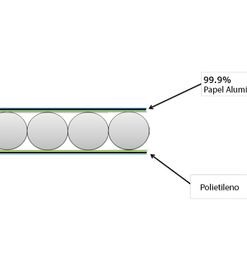 Plástico antidetección. Acaba con tu miedo a que descubran tu cultivo con nuestro plástico antidetecccion. Este plástico actúa como un potente aislante térmico evitando que las paredes, techos se calienten reduciendo al mínimo la posibilidad de ser descubiertos por las cámaras térmicas y termómetros laser. El plástico está formado por una doble capa de aluminio puro de baja conductividad térmica que lo recubre y una capa de burbuja con cámaras de aire que lo rellena logrando así tener un reflectante de primera calidad consiguiendo más del 97% de reflexión. Además de un aislante térmico que protegerá tu cultivo tanto de miradas indiscretas como del frio del invierno y del calor del verano, ahorrando en gasto de aire acondicionado. Fácil de limpiar, instalar y cortar, ligero y resistente, no toxico, no absorbe la humedad. Características técnicas: Material: Papel de aluminio. Espesor: 3mm. Resistencia a la tracción: 11lb/inch. Resistencia al desgarre: 3.5lb/inch. Longitud: 40m. Anchura: 1.2m. Rollo: 48m². Reflectividad: 97%. Impermeabilidad: 100%. Protección contra el fuego: Clase A. Densidad: 230g/m².