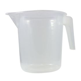 Jarra medidora de plástico con 1L de capacidad.