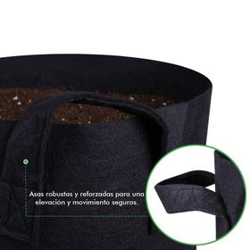 Maceta de tela AirRoot de alto rendimiento, fabricada en geotextil de 1º calidad y con costuras reforzadas, para todo tipo de plantas y árboles. Proporciona un gran soporte, al tiempo que permite que el aire penetre mejor hasta el sistema de raíces. Mejora el drenaje y evita que el sistema de raíces se sobrecaliente en los días calurosos. Ayuda a las plantas a establecerse más rápidamente después del trasplante El asa de mano está incluida en todos los tamaños de maceta. Ideal para exterior e interior, para sistemas de riego por goteo, inmersión, hidroponía, aeroponía, acuáticas, mechas y decantación. Capacidad: 11L. Beneficios: Libre circulación y flujo constante de oxígeno en las raíces. Proliferación natural de micorrizas y tricodermas. Mayor interactuación con el agua y abonos. Evita la variación del PH en el agua por estancamiento en el contenedor. Permite evaporar el cloro del agua de riego. Aislante del frió en invierno, evitando la congelación de las raíces.